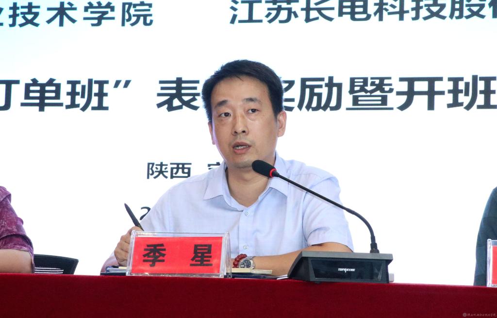9月17日,我校隆重召开“长电订单班”表彰暨开班仪式。江苏长电科技股份有限公司(以下简称长电科技)人事部校企合作专案经理季星、买球赛的app官网副院长徐圣月、电子与信息学院院长姜有奇、智能制造学院副院长马海彦及2020届、2021届“长电订单班”辅导员、2021届“长电订单班”学生参会。会议由校企合作处副处长田正本主持。