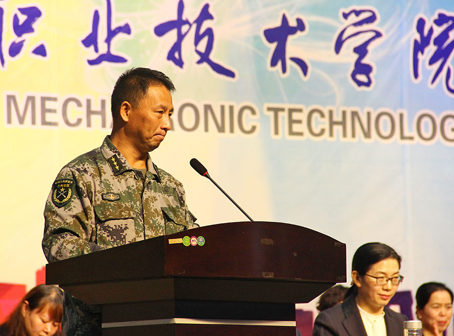 国家级名师,信息工程系专业带头人郭靖老师代表全体教职工,16通信技术专业何晶同学代表在校生,17级机电技术马润华代表新生,秦岭学生军训基地副主任卢春国、军训教官陈航等先后发言,表达了对新生的欢迎和关怀,也对军训和今后的学习生活提出了殷切的期望。
