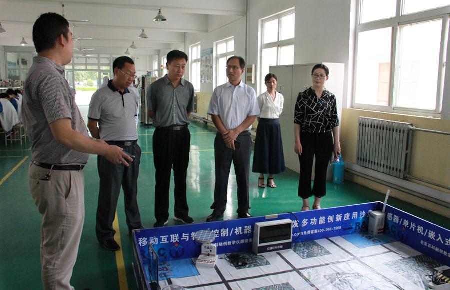 为推动现代学徒制试点工作的规范化、制度化,提高试点工作的质量和效益,6月21日,陕西省教育厅职教处副处长滚多海、教育部现代学徒制试点工作委员会专家惠均芳、张建文一行来买球赛的app官网检查调研现代学徒制试点工作。学院党委书记伊逊智、副院长张琴、电子工程系主任姜有奇、机电工程系主任白娟娟等陪同调研。