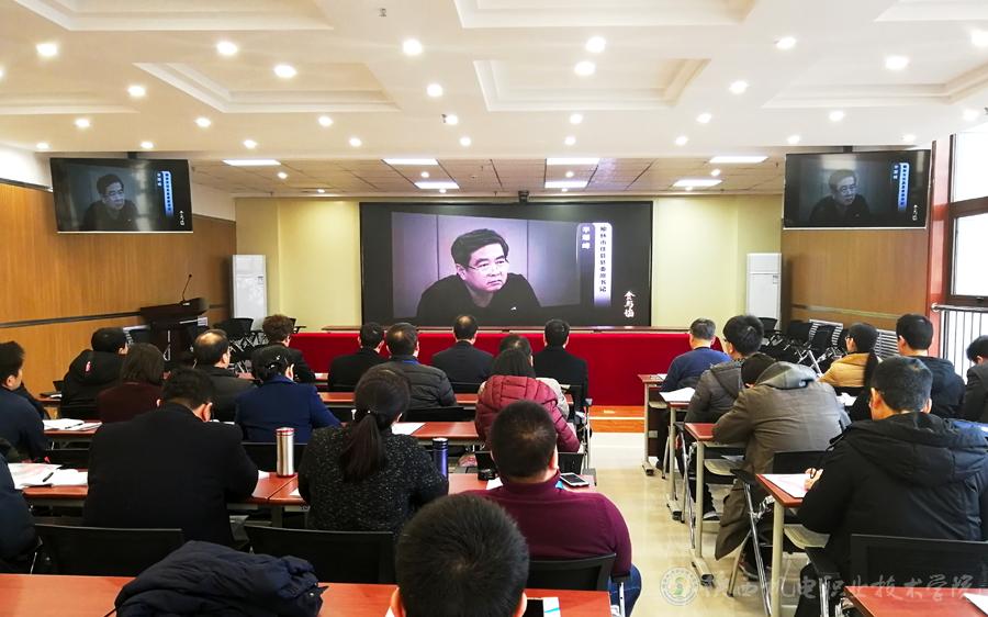 邓新治传达了《中共陕西省纪委驻省教育厅纪检组关于组织观看警示教育片<贪与悔>的通知》文件精神,要求全体干部按照学院党委“讲政治、敢担当、改作风”专题教育要求加强自身廉政教育,切实增强廉洁自律意识,提高拒腐防变能力,从警示教育片中汲取深刻教训,自觉践行忠诚干净担当,永葆清正廉洁的政治本色。