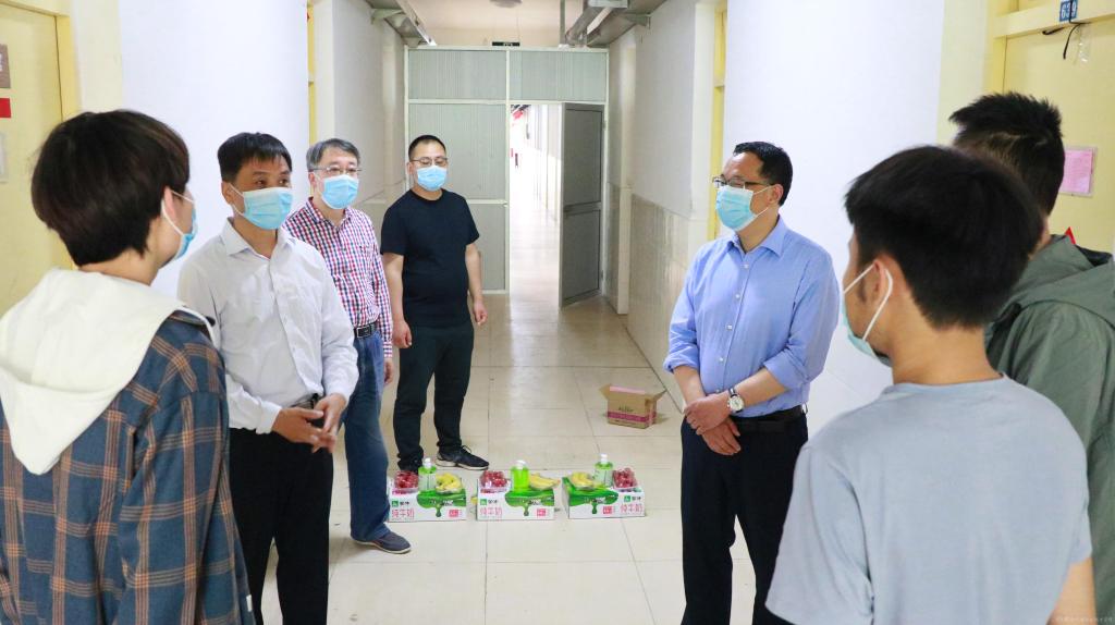 5月18日上午,学院党委副书记、院长向纪明,副院长张新堂一行前往隔离留观区,看望并亲切慰问了被隔离的同学们,学生处处长王建斌陪同。