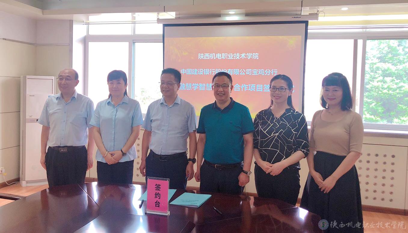 7月16日下午,我校与中国建设银行宝鸡分行“建融慧学智慧校园”签约仪式在行政楼三楼西会议室举行。中国建设银行股份有限公司宝鸡分行行长畅成会一行与党委副书记、院长向纪明,副院长张琴共同参加签约仪式。签约仪式由财务处严炜主持。