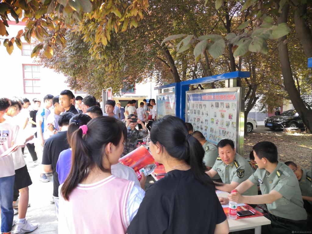 为宣传国家征兵政策,鼓励热血青年学子应征入伍,报效祖国,6月11日上午,我校人武部联合金台区武装部在宝福路校区组织了“2021年国防教育暨征兵宣传进校园宣讲会”活动。活动通过征兵工作座谈会、校园宣讲会、现场咨询会等形式进行了全方位的宣传。学校副院长张新堂、金台区副区长张小平、金台区武装部部长轩继东、学校人武部部长王建斌、保卫处副处长常小凯、各二级学院书记及全校一千多名学生参加了本次活动。