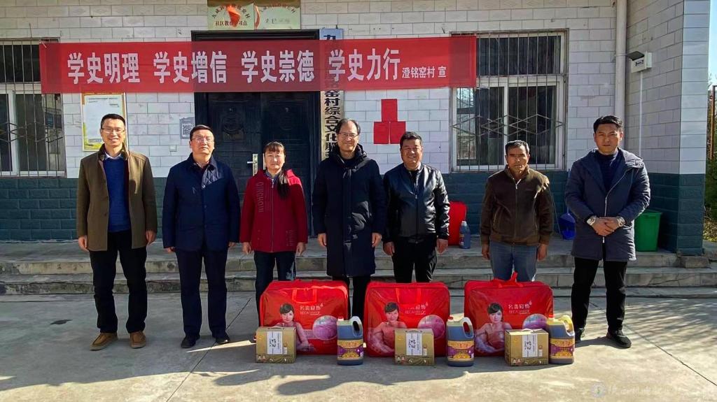 为进一步保障巩固拓展脱贫攻坚成果同乡村振兴有效衔接,11月19日,买球赛的app官网党委书记伊逊智,纪委书记齐晓军,纪委委员、党委宣传部、马克思主义学院院长、工会副主席李明带着棉被、大米和菜油,以及学校为村民修建卫生厕所的2万元资助金,深入麟游县九成宫镇澄铭窑村,开展“我为群众办实事,乡村振兴送温暖”爱心实践活动,实地调研、走访座谈。澄铭窑村书记石宏平、我校驻村干部李英儒一同参加。