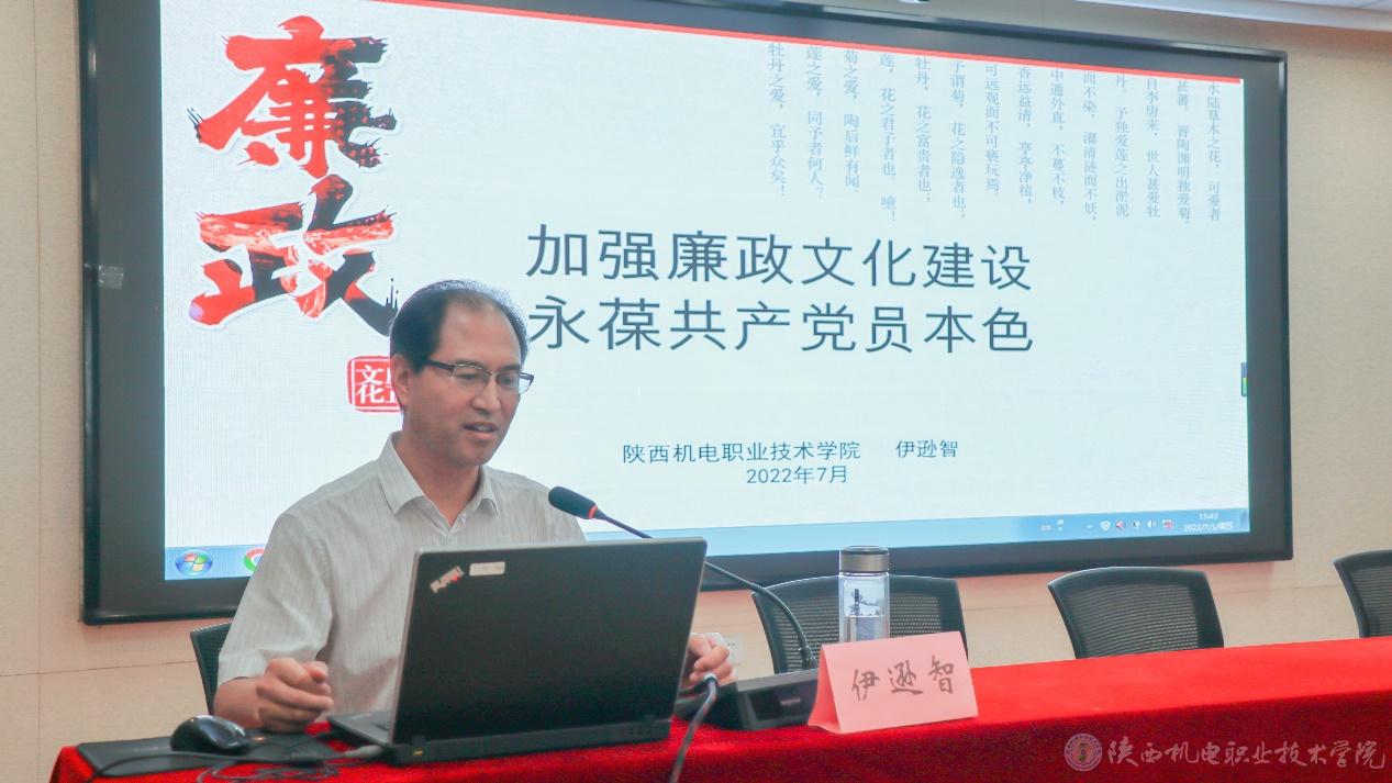 会议开始,党委书记伊逊智以《加强廉政文化建设,永葆共产党员本色》为主题,紧扣廉洁文化宣传教育月活动主题,突出“四个结合”给与会人员讲授了一堂廉洁党课。