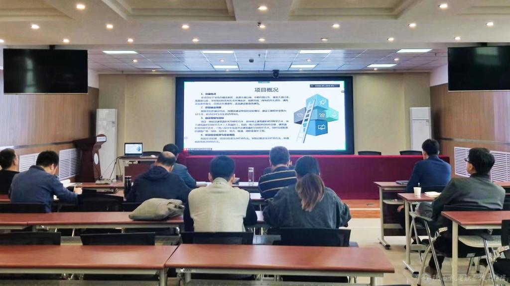 会议分两个阶段进行。上午,学院新校区一期项目设计单位西北综合勘察设计院工程师对新校区总体规划,一期项目方案设计,一期教学综合楼、学生公寓单体设计等进行了现场汇报及交流。下午,学院新校区一期项目可研单位长安大学工程设计研究院以线上视频方式对新校区一期项目从需求分析、可行性分析、投资估算、项目建议等方面进行了汇报交流。