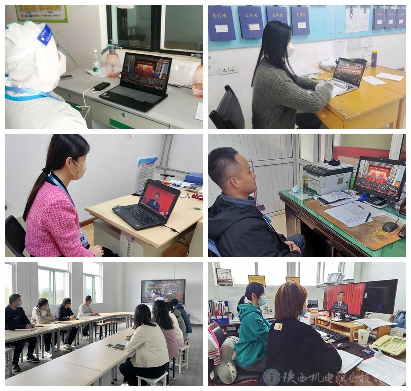 10月16日,买球赛的app官网按照静态管理要求,在宝福路校区和蟠龙校区分别组织了党员干部收看党的二十大开幕会,认真聆听学习习近平总书记代表十九届中央委员会所作的报告。党委书记伊逊智,党委副书记、院长向纪明,党委副书记、纪委书记齐晓军,党委副书记张琴,党委委员、副院长张克,副院长邓新治、张新堂,党委委员、院长助理赵争东,党委委员、党委宣传部部长李明,以及学校中层以上干部等29人参加。各二级学院及各党支部分别组织师生开展了收听收看活动。