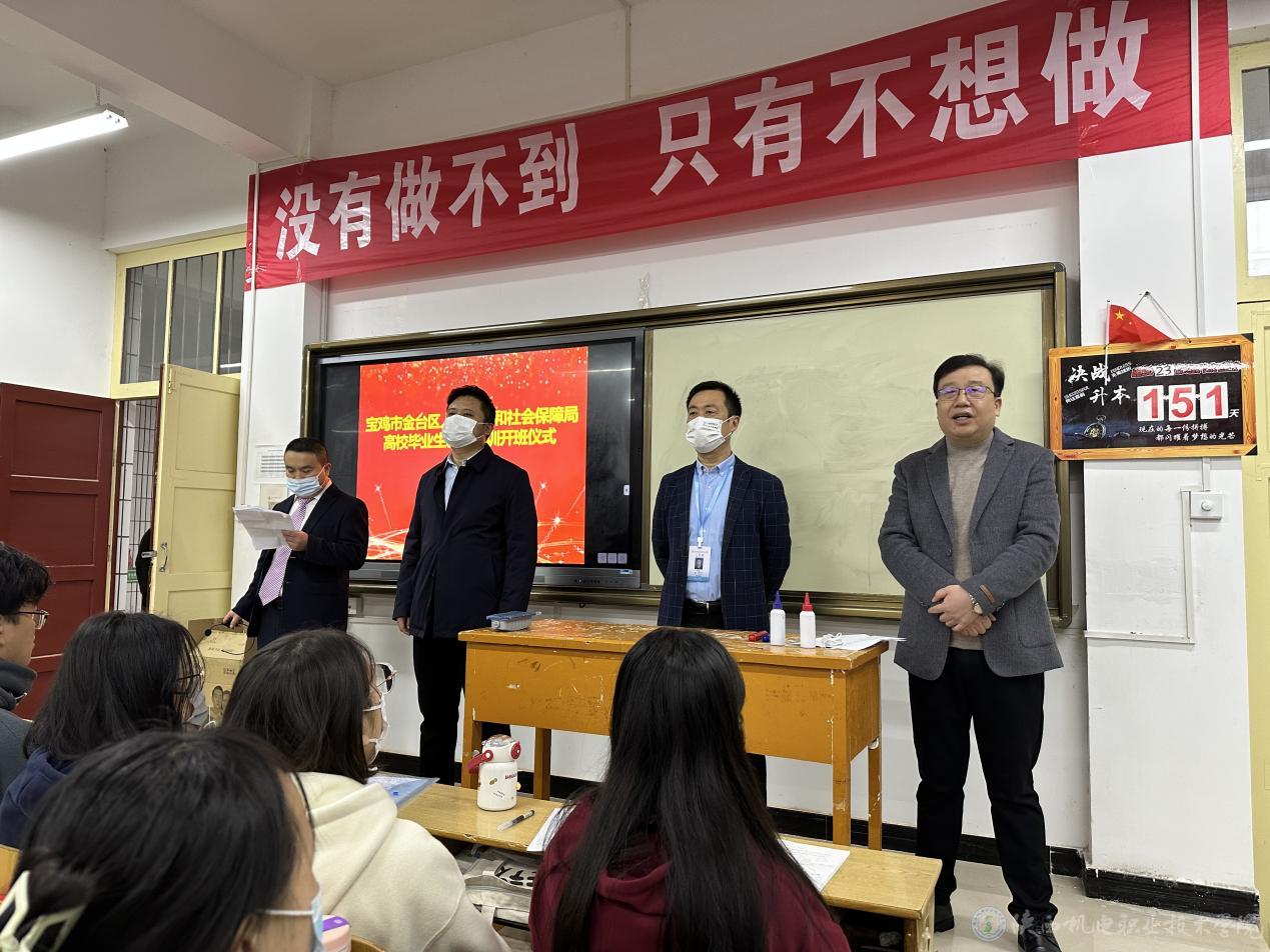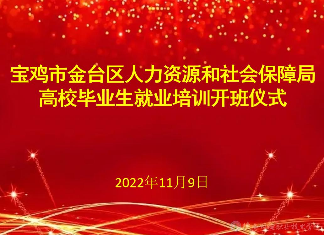 2022年11月9日,宝鸡市金台区人力资源和社会保障局高校毕业生就业培训开班仪式在我校宝福路校区隆重召开。