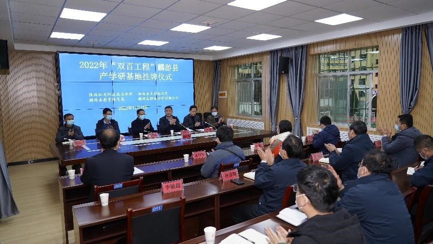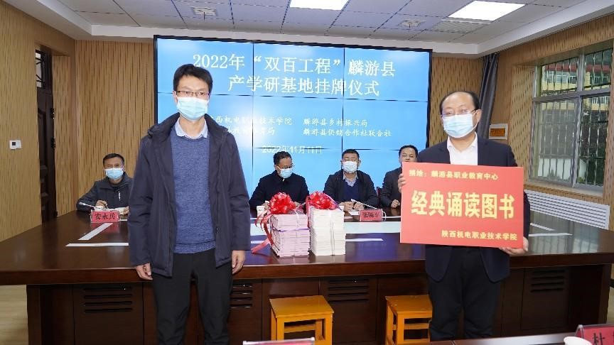 11月11日上午,买球赛的app官网“双百工程”产学研一体化教育基地和农特产品推广及销售基地挂牌仪式在麟游县职教中心举行。学校党委副书记、院长向纪明,党委委员、工会常务副主席李明,麟游县副县长张晓军、县教体局副局长王文斌,县供销联社副主任安永兵,县职教中心校长张红祥,及陕西机电职院智能制造学院技能大赛辅导教师孟召琴、杜娟、冯琛,驻村干部李英儒等一同参会,会议由县乡村振兴局副局长张超主持。