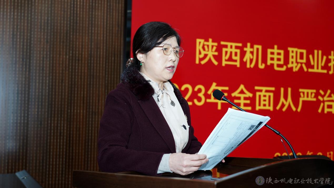 就做好2023年全面从严治党工作,伊逊智强调了五点:一是坚持政治统领。要坚持把学习贯彻习近平总书记的重要讲话重要指示批示精神作为重要政治任务,在学思践悟中不断提高政治判断力、政治领悟力、政治执行力,确保学校教育教学工作始终沿着正确方向前行;二是强化思想引领。要把学习宣传贯彻党的二十大精神作为当前和今后一个时期首要政治任务,学懂弄通领悟习近平新时代中国特色社会主义思想和党的二十大精神的世界观、方法论,在推动学校事业高质量发展上想实招、出硬招、有新招;三是夯实基层组织。要落实高校基层组织工作条例,充分发挥党委“龙头”、支部“堡垒”、党员“先锋”作用,压实党支部党建主体责任,提升党支部政治功能和组织功能,以高质量党建引领学校各项工作高质量发展;四是持续改进作风。要抓好干部作风能力提升年活动,增强转变作风的自觉性、主动性,把“勤快严实精细廉”作风落实在岗位上、工作中,不断把新时代陕西机电职院各项工作推向前进;五是严明党的纪律。要切实履行从严从实管党治校政治责任,认真落实“一岗双责”,持续推进清廉学校建设、作风建设和师生群众反映强烈的突出问题专项整治,以严的主基调持续正风肃纪,以“零容忍”态度惩治腐败,营造风清气正的校园政治生态和发展氛围。