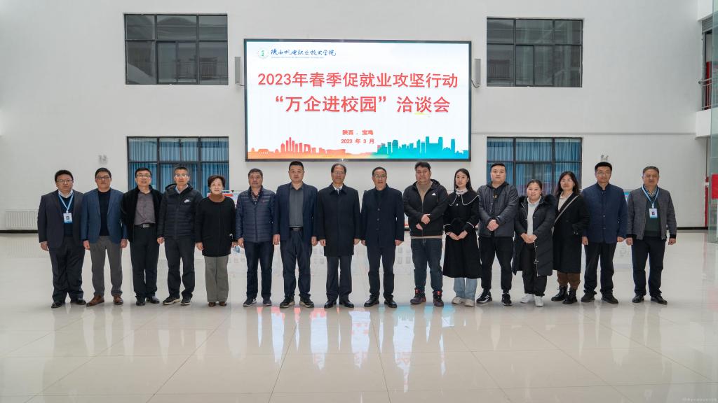 为深入学习贯彻党的二十大精神,落实党中央、国务院和省委、省政府“稳就业”“保就业”决策部署,学校于3月17日,邀请无锡华润微电子有限公司、中航富士达科技股份有限公司、咸阳隆基乐叶光伏科技有限公司、卓翔企业集团(西安)有限公司、陕西郭家河煤业有限责任公司、宝鸡市东阳机械制造科技有限公司、浙江长江汽车电子有限公司、岐山县无人机协会、宝鸡忠诚铸造有限责任公司等企业进校开展“万企进校园”活动。学校党委书记伊逊智、校长向纪明亲切与各用人单位代表交流,并合影留念。