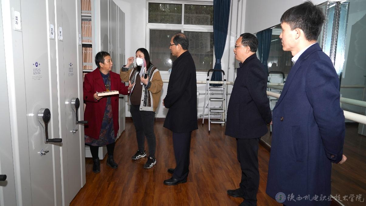 3月20日,陕西省高校档案检查工作领导小组副组长、省教育厅办公室调研员、省高教系统档案学会副理事长王瑛,西北大学档案馆馆长王旭洲,西安财经大学档案馆馆长崔军定,西安欧亚学院档案室主任李俊连、西京学院档案馆馆长马燕等莅临我校进行档案工作专项检查,党委书记伊逊智,党委副书记、院长向纪明,党委委员、院长助理赵争东,党政办主任、档案室主任康健,档案室干事闫瑶瑶参加档案工作汇报会。