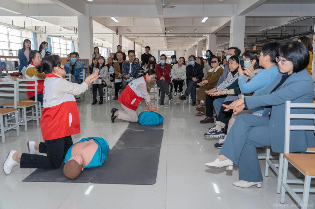 白鹿原急救教育学院5名应急救护师采用讲解和实操相结合的方式,就徒手心肺复苏、AED的使用、气道异物梗阻的急救方法进行了培训。