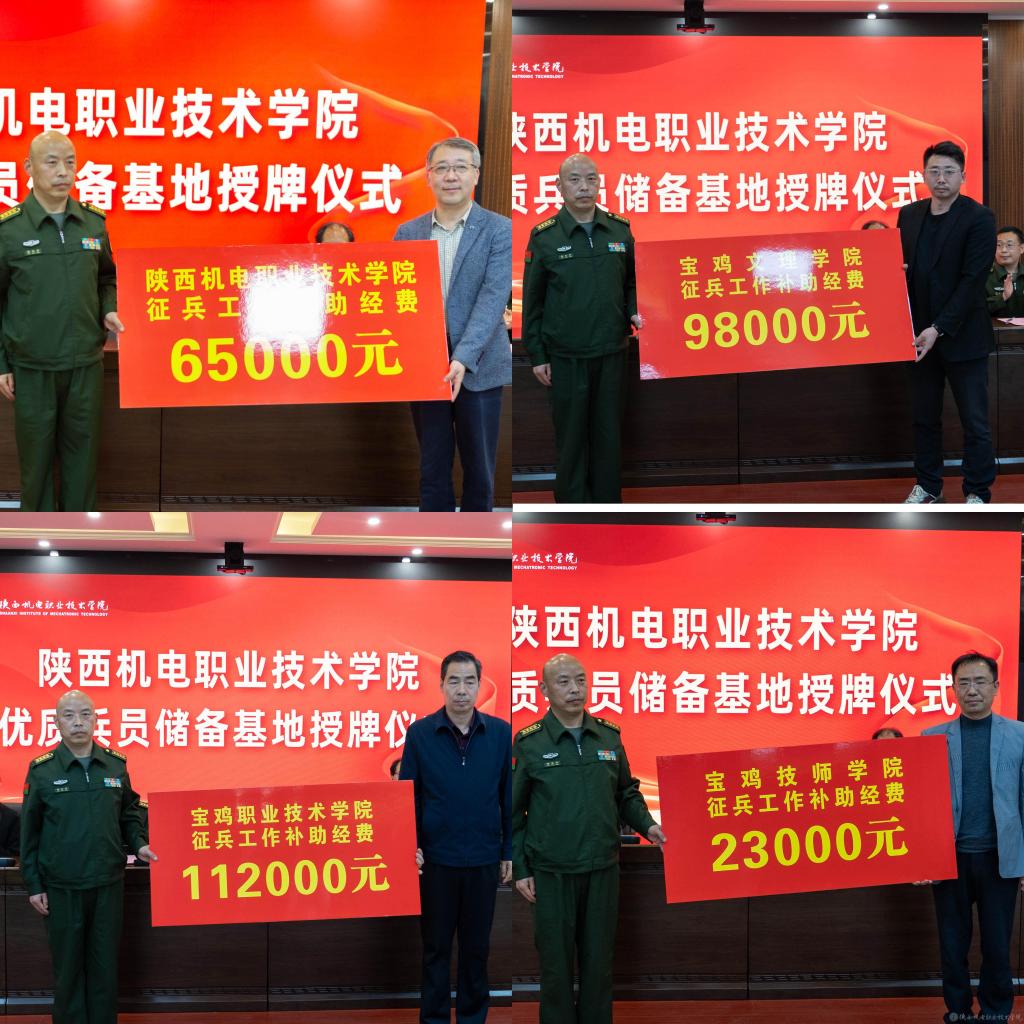 仪式上,张琴代表学校致欢迎辞,并介绍了我校近年来征兵工作开展情况和“优质兵员储备基地”后期建设工作设想;魏海峰宣读了省征兵办、省教育厅、省人社厅关于批准设立“优质兵员储备基地”的批复;杨红升与伊逊智为学校“优质兵员储备基地”揭牌;四所院校领取了2022年高校征兵工作补助经费。