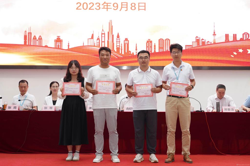 副院长张新堂同志宣读2023年“双师素质教师”认定结果,2022年度黄大年式教师团队先进事迹学习“先进个人”以及2023年度辅导员素质能力大赛表彰文件并颁奖。