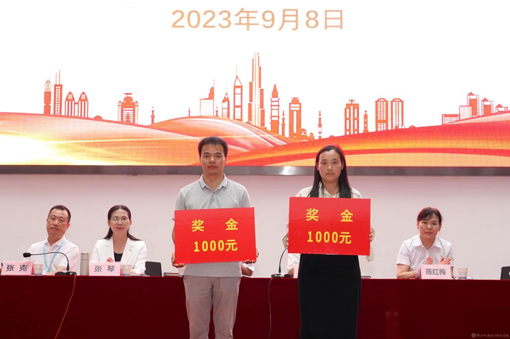 党委副书记张琴同志宣读《陕西省教育厅关于表彰第十三届陕西高职院校教学名师奖获奖教师的通知》并授予鲜花;宣读2022年度“先进集体”,2023年度“招生工作先进集体”表彰文件并颁奖。