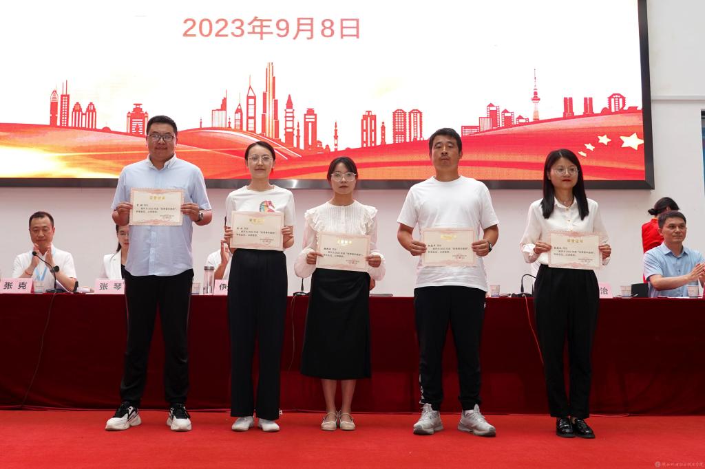 培根铸魂强国梦,躬耕教坛育新人。9月8日下午,买球赛的app官网召开2023年教师表彰奖励暨欢迎新教工大会,大会在蟠龙校区博学楼召开。校党委书记伊逊智,党委副书记张琴,党委副书记、纪委书记陈红梅,党委委员、副院长张克,副院长邓新治,副院长张新堂,党委委员、院长助理赵争东,各二级单位、职能部门负责人,全体新教工、获奖教师及团队、镇巴县职业中学“组团式”帮扶教师、麟游县乡村振兴驻村教师参会,会议由校党委副书记、院长向纪明主持。