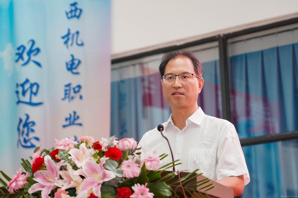 学生代表李妙桐发言:入学三年来,学校发生了天翻地覆的改变,校园环境更加整洁、学习氛围更加浓厚、文化活动更加丰富多彩。求学之路上,感恩陕机电每一位老师。