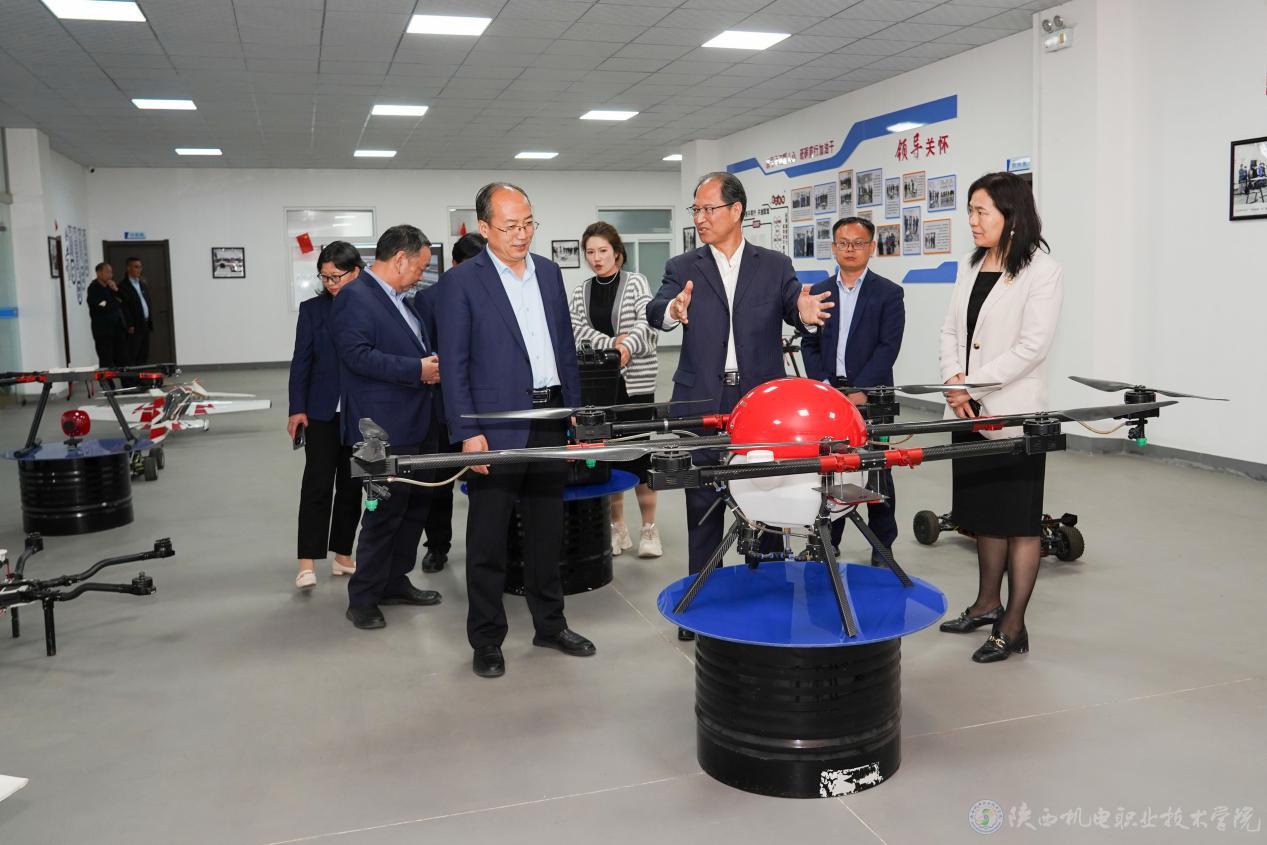 会后,黎炜一行参观了我校擀面皮产业学院、无人机产业学院、智能制造学院实训室等地。