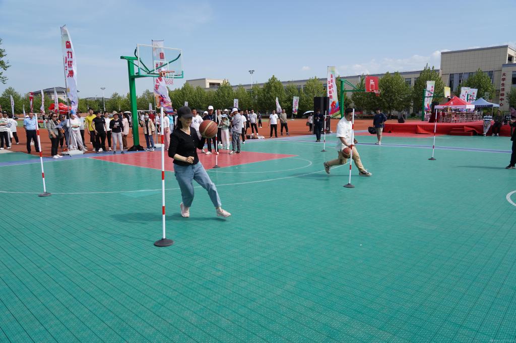 本次趣味运动会在校工会的精心策划和体育部、各分工会的密切配合下,共组成七支教工队参与比赛。设有“飞盘九宫格”“1分钟原地跳绳”“袋鼠跳”“4*100米混合接力”“30米篮球运球绕杆接力”“旱地龙舟”六个项目,集趣味性、娱乐性、协作性和竞争性为一体,既是力量的角逐,又是智慧的较量;既考验个人体育竞技水平,又考验队员之间的默契与配合。