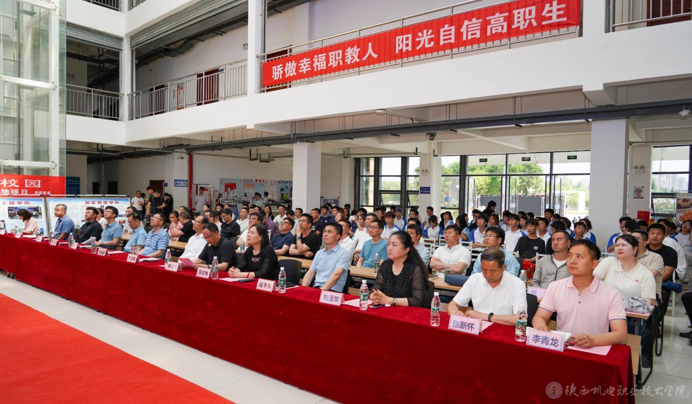 启动仪式结束后,党委委员、副院长张克和宝鸡擀面皮产业促进协会会长张新怀共同为擀面皮自动化生产设备研发中心揭牌。大家合影留念后,共同前往博学楼大厅、博学楼前广场、行知楼、强技楼等地参观了各教学单位职业教育成果展示。