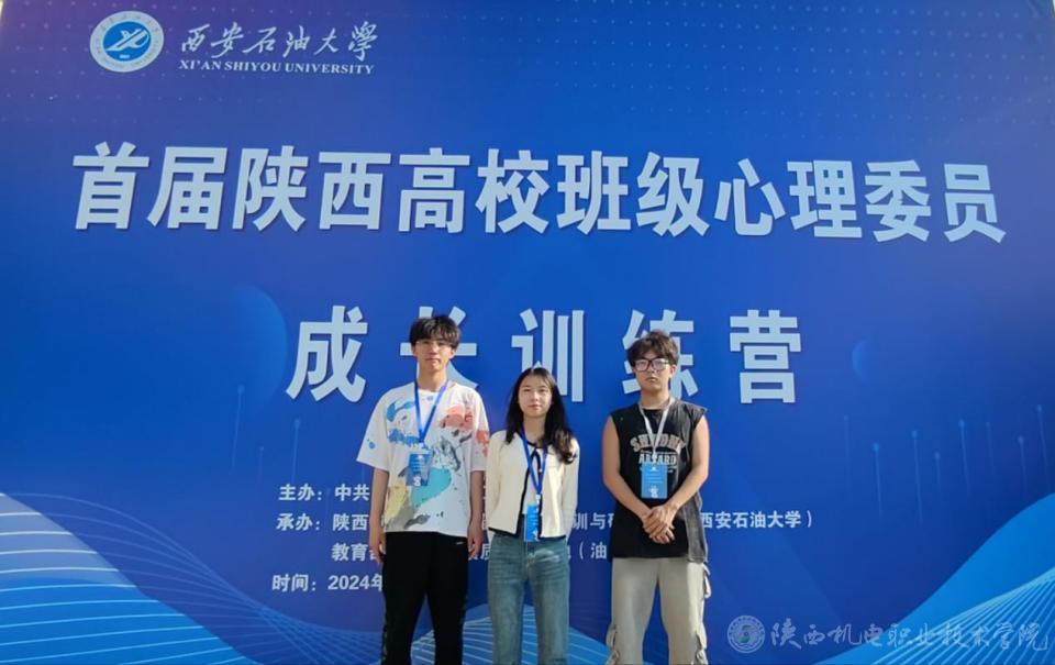5月24日,首届陕西高校班级心理委员成长训练营在西安石油大学成功举行。我校由心理健康教育中心教师唐转转带队,智能制造学院宋坤、电子信息学院徐伟涛作为优秀心理委员代表参加训练营。