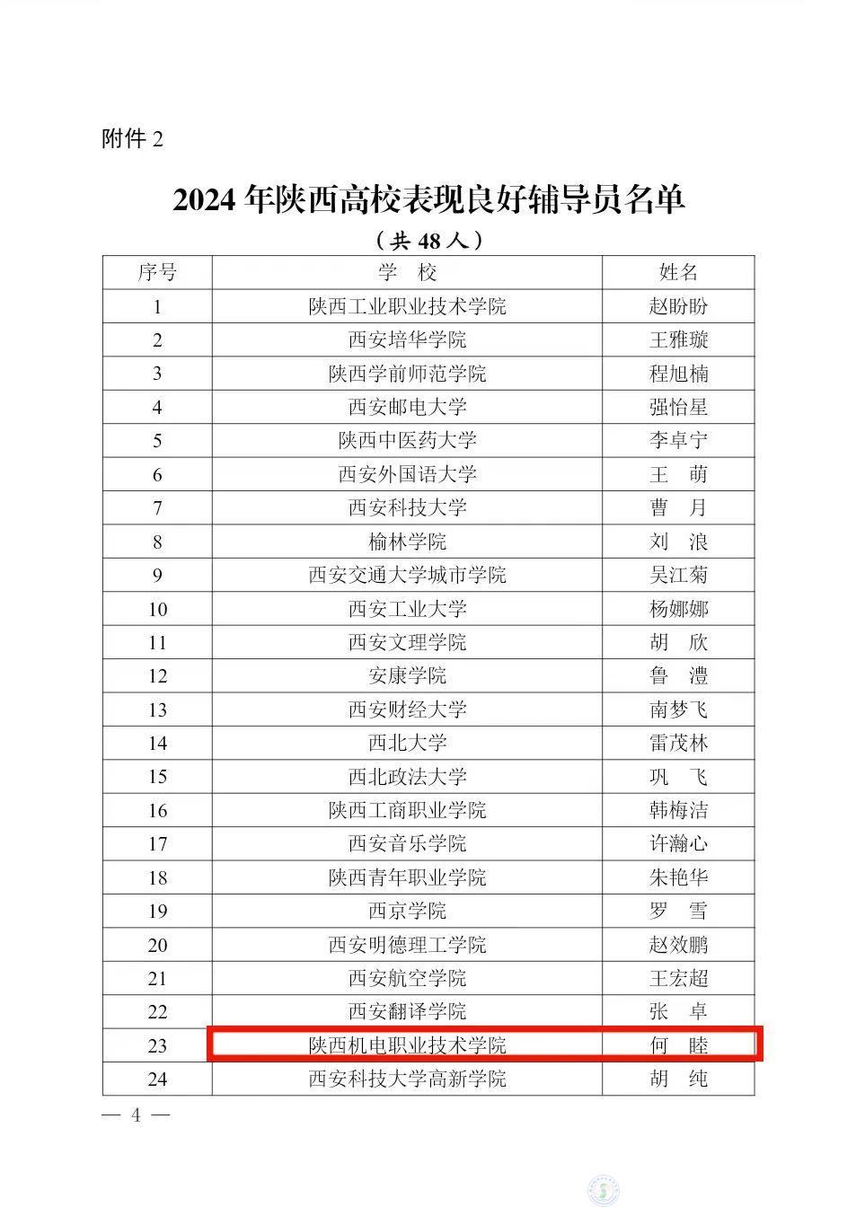 7月29日,中共陕西省委教育工委发布了《关于对2024年陕西高校辅导员先进典型推选展示活动表现突出个人进行表扬的通知》(陕教工函〔2024〕241 号),买球赛的app官网专职辅导员何睦获2024陕西高校“表现良好辅导员”荣誉称号,这是我校首次获得该项省级荣誉。