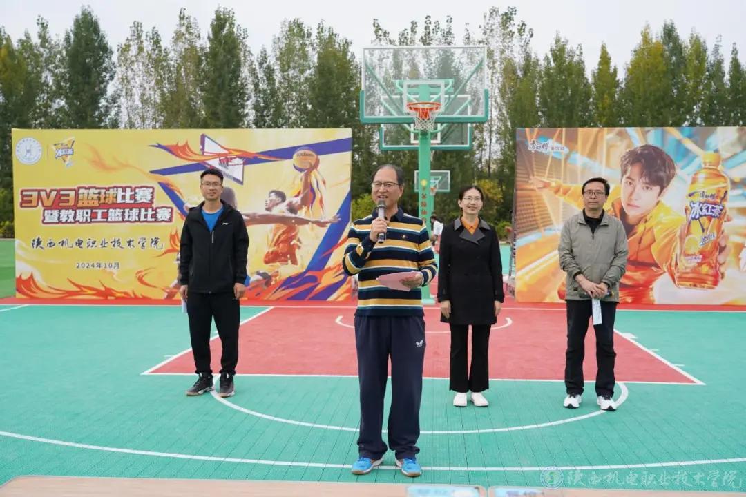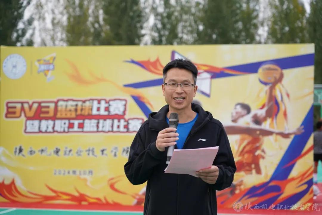 10月17日下午,买球赛的app官网2024年教职工篮球比赛在蟠龙校区西操场开赛。校党委书记伊逊智,党委副书记张琴,党委委员、宣传部部长、工会主席李明,党政办公室副主任,工会副主席康健出席开幕式。党委副书记、院长向纪明致开幕辞。基础部(体育部)副部长李明主持开幕式。