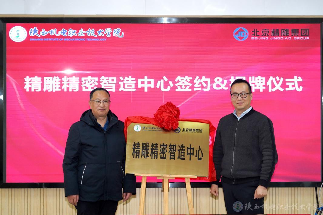 11月28日,陕机电精雕精密智造中心签约揭牌仪式在图书馆二楼会议室举行,北京精雕科技集团有限公司(以下简称“北京精雕公司”)行政总监李文华、北京精雕公司教育总监关山,买球赛的app官网党委书记伊逊智,党委副书记、院长向纪明等参加揭牌仪式。仪式由党委委员、副院长张克主持。