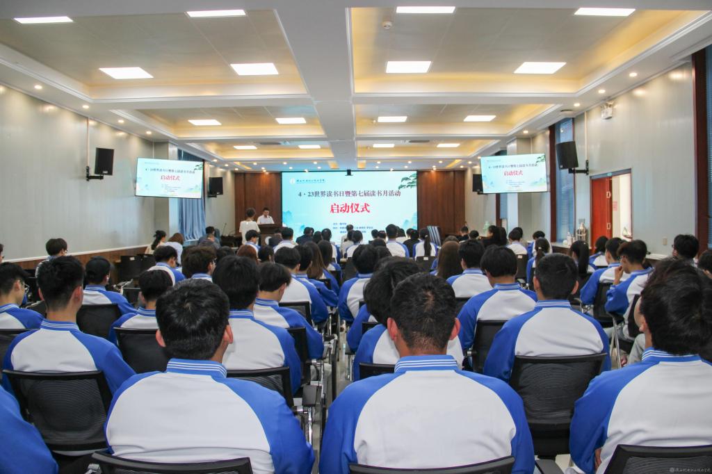 4月17日下午,买球赛的app官网“阅尽春光·读享芬芳”为主题的4·23世界读书日暨第七届读书月活动启动仪式在蟠龙校区博学楼111会议室举行。党委书记伊逊智出席并宣布活动开幕,在校校领导参加启动仪式。启动仪式由图书馆副馆长徐建主持。