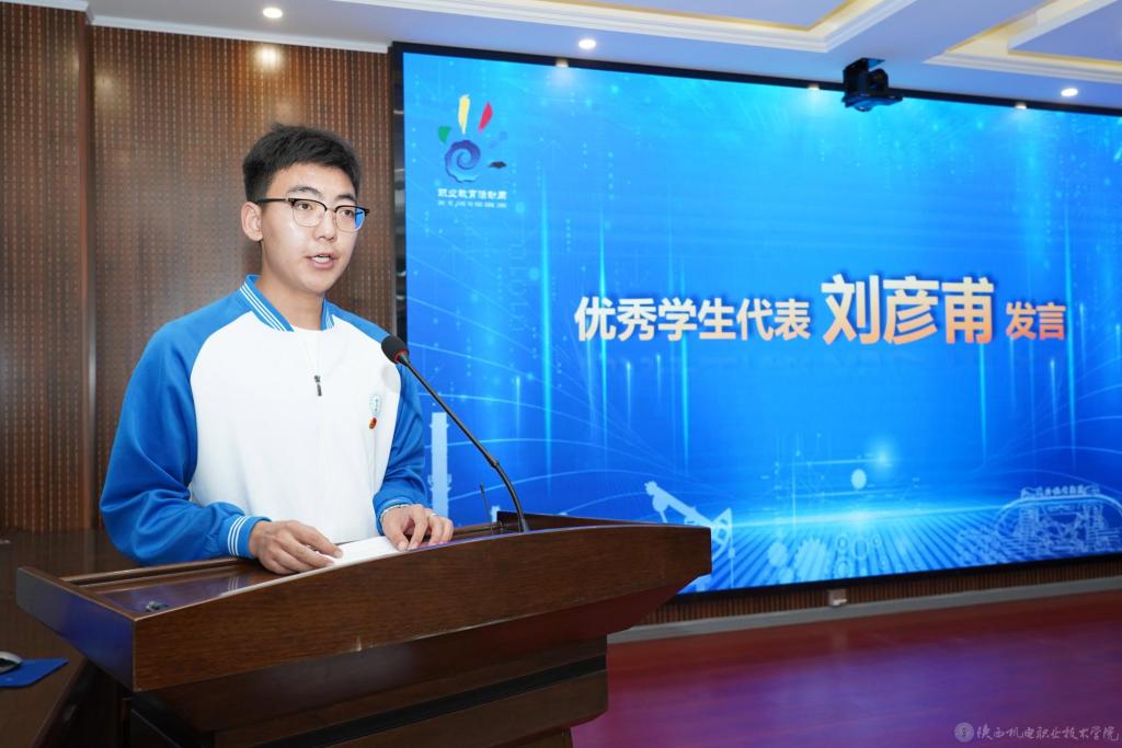 省技能大赛金奖获得者、智能制造学院23电气6班刘彦甫分享了自己在今年的省级技能大赛中,面对客场环境陌生,设备突发故障等挑战时,能够沉着冷静,运用所学知识,与团队成员协同完成比赛项目的全部流程,最终斩获工业网络智能控制与维护赛项金奖。他表示,作为新时代的新青年,将牢记嘱托,努力钻研技术技能,全面提高自身的职业素质和技能水平,用实际行动践行“一技在手,一生无忧”。