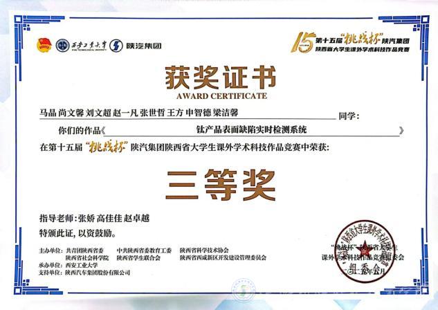 我校谢永强、袁硕、鲁昊琪、杨伟超、黄嘉伟、李阳、杨灿、丁子芮同学的作品《从“单点突破”到“全域辐射”:地方特色美食的市场分析与可持续发展策略--基于宝鸡擀面皮的实证研究》荣获大赛二等奖;马晶、尚文馨、刘文超、赵一凡、张世哲、王方、申智德、梁洁馨同学的作品《钛产品表面缺陷实时检测系统》荣获三等奖;刘燚翔、陈晓宇、张辰瑕、陈欣怡、朱智勇、成文杰、张继选、文雅君同学的作品的《绿动乡振:乡村振兴背景下新能源汽车下乡政策落地困境与优化路径研究--以西北地区农村为例》荣获三等奖,这些成绩的取得,充分彰显了我校师生在学术科技领域的深厚底蕴和无限潜力。