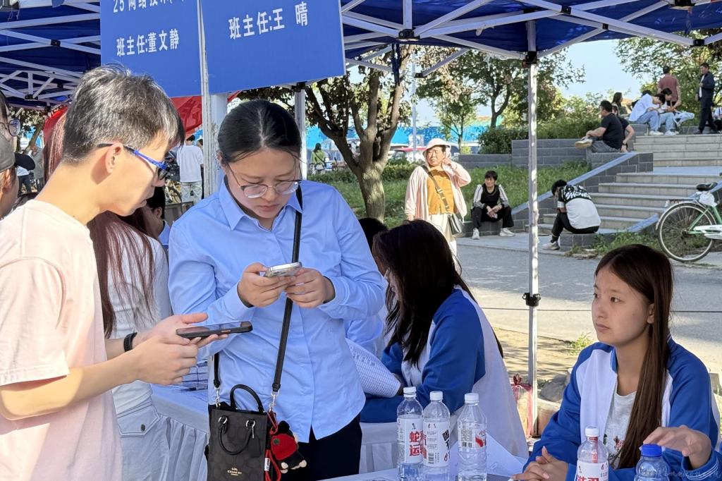 “同学,请打开‘今日校园’,点击‘移动迎新’,你的报到手续就完成了……”以贾诗哲为代表的学生志愿者分组指导新生进行线上报到。现场,各二级学院党政领导干部,辅导员、班主任、团学干部情绪高涨,为现场新生及家长做好报到服务工作。迎新现场,热闹非凡,到处洋溢着青春的气息。