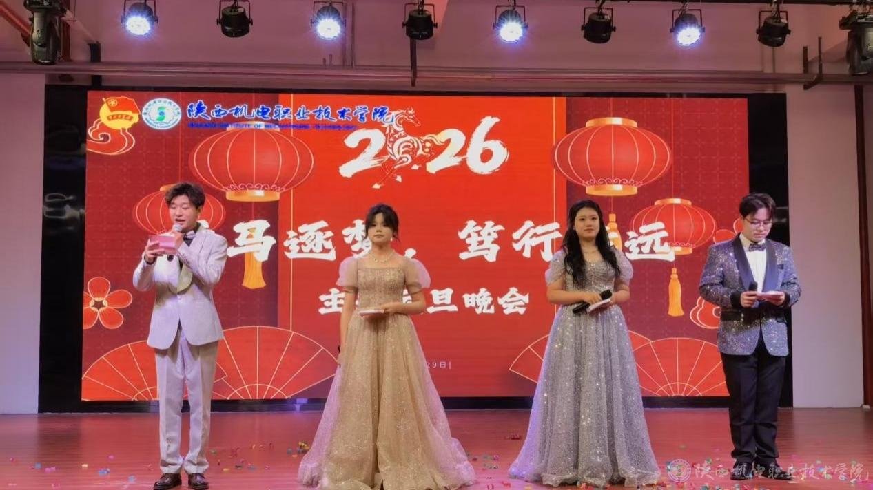 12月29日,我校在宝福路校区大礼堂、蟠龙校区大学生活动中心举办以“天马逐梦,笃行致远”为主题的2026元旦晚会。机电学子齐聚一堂,用歌舞、小品、朗诵等多样形式,共赴盛宴。