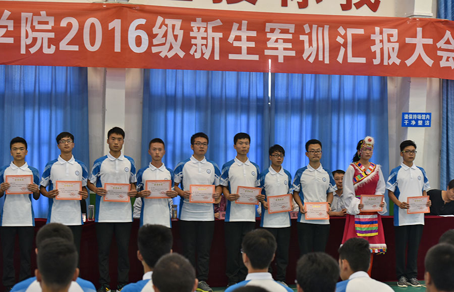 9月23日下午2:30,我院在体育馆隆重举行2016级高职新生军训汇报表演暨总结表彰大会,检阅新生的军训成效,表彰奖励军训中涌现出的先进集体和个人。学院党委书记、校长伊逊智、副校长徐圣月、副校长张琴、教务部部长王建斌、学工办主任兼保卫部部长朱云洁及高职班主任参加了大会,大会由张琴副校长主持。