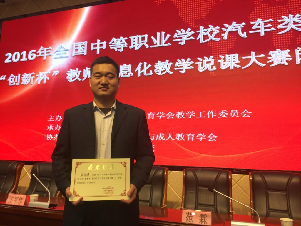 由中国职业技术教育学会教学工作委员会主办、高等教育出版社承办的2016年全国中等职业学校汽车类专业“创新杯”教师信息化教学说课大赛于11月14日在湖南长沙汽车工业学校落下帷幕。来自全国各地109位中职汽车类专业教师参加了此次大赛,我院汽车工程系冯秋佳老师荣获汽车类专业课程竞赛二等奖。