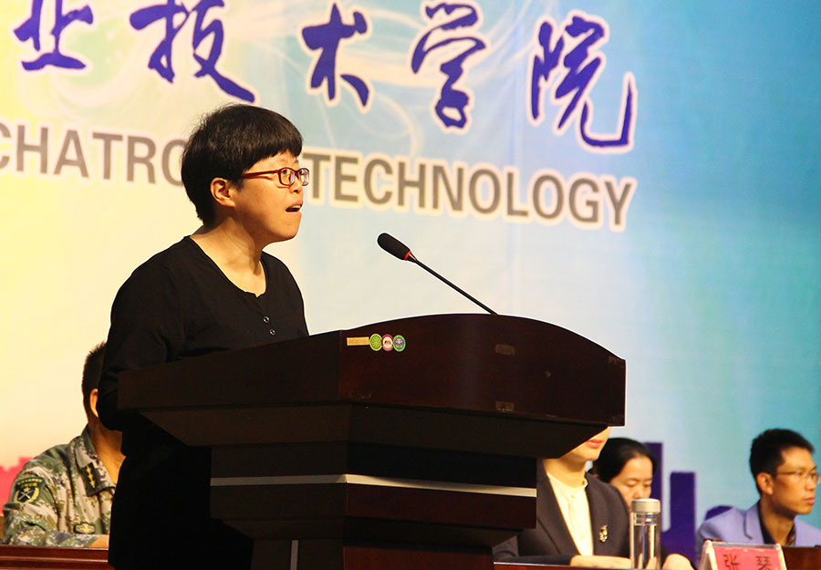 国家级名师,信息工程系专业带头人郭靖老师代表全体教职工,16通信技术专业何晶同学代表在校生,17级机电技术马润华代表新生,秦岭学生军训基地副主任卢春国、军训教官陈航等先后发言,表达了对新生的欢迎和关怀,也对军训和今后的学习生活提出了殷切的期望。