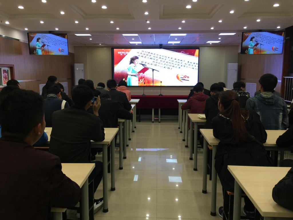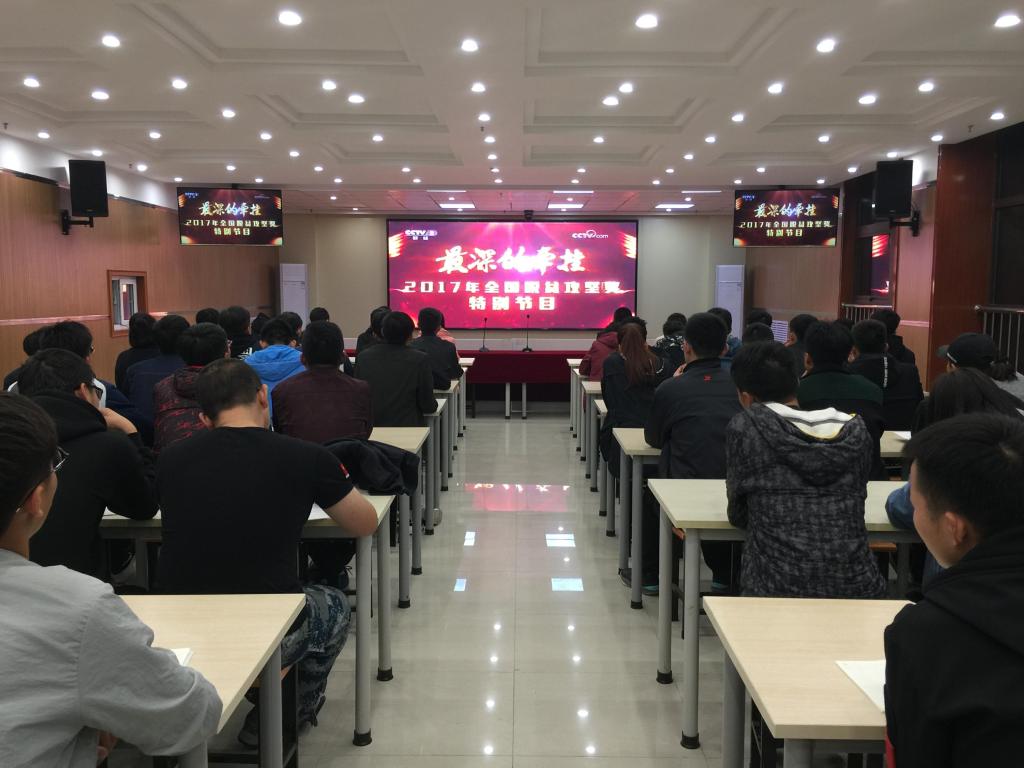 2017年10月17日21:15,买球赛的app官网党委宣传部、学生工作办公室组织学院辅导员和各班班长、团支书,在汽车机电大楼四楼报告厅,收看“2017脱贫攻坚奖特别节目”。