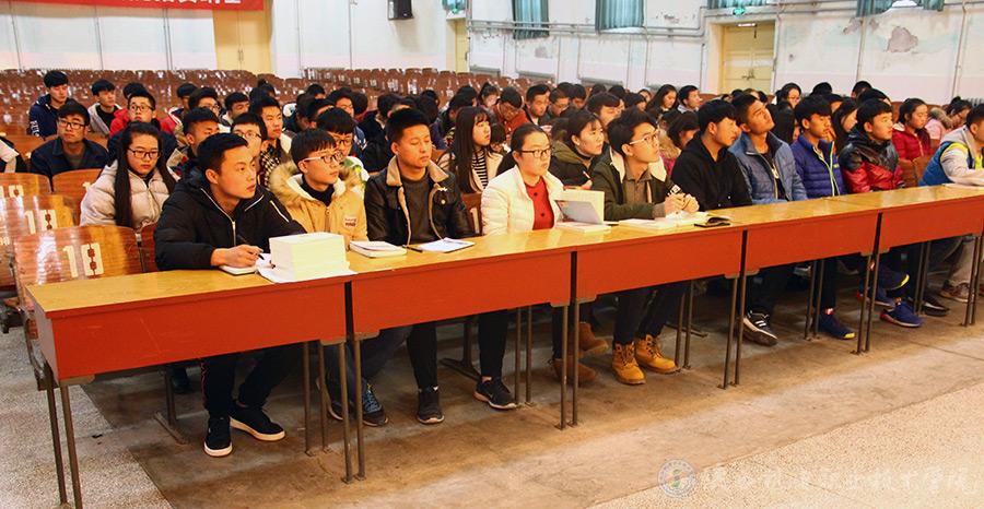 2017年12月5日下午,买球赛的app官网学工办主任、学生工作党支部书记朱云洁同志为学院第一期党课培训班师生讲解“做一名合格党员”。报告会由学院党委委员、组织部部长、党政办主任赵争东同志主持。