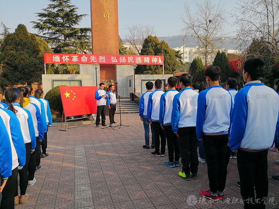 纪念仪式由学生会副主席王静同学主持,全体人员奏唱国歌,由学生代表向革命英烈敬献花篮,全体人员向革命英烈三鞠躬并默哀。学生会宣传部副部长何晶同学带领同学们重温入团誓词,团委组织部副部长王海楠同学代表全体学生发言,提倡同学们要勿忘国耻,发扬民族精神,做有理想、有本领、有担当的新时代三有青年。仪式结束后,全体同学参观了革命英烈纪念馆。