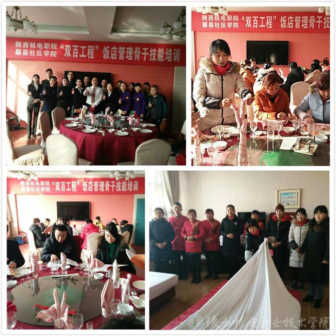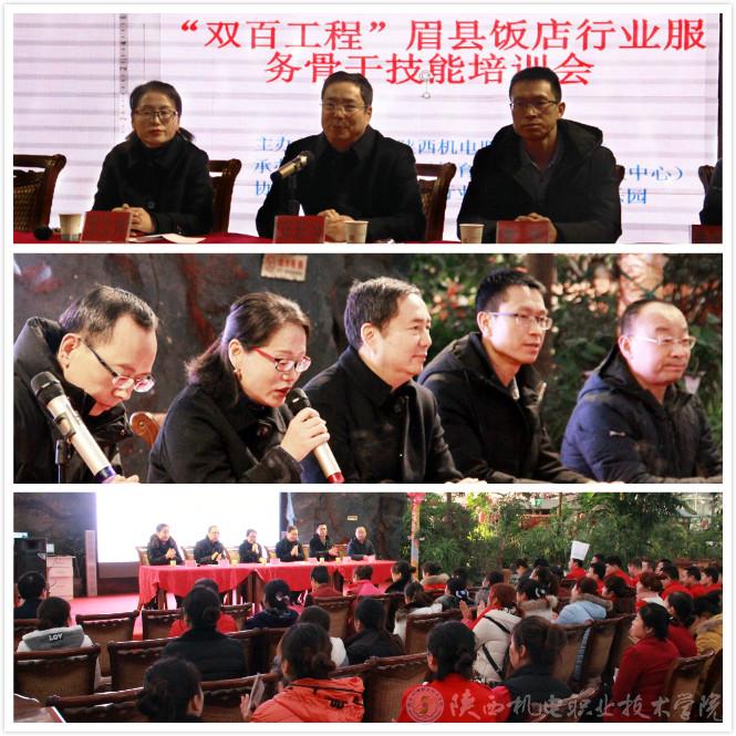 2018年12月13日,由我院主办的2018年“双百工程”眉县饭店行业服务骨干技能公益培训会,在眉县滨河新区宝深逸乐园按计划如期举行。我院党委副书记、纪委书记邓新治,党委宣传部部长、工会副主席李明代表学院参加了培训会活动。培训会由眉县职教中心副校长周文婷主持。