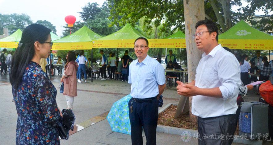 院长向纪明(中)与副院长张琴(左)、学工部副部长常小凯在迎新工作现场