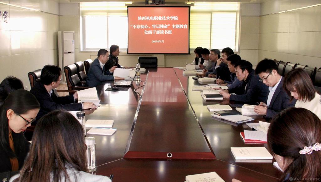 2019年9月23日,学院党委在行政楼西会议室举行“不忘初心、牢记使命”主题教育处级以上干部读书班开班仪式。学院处级以上领导干部参加,党委副书记邓新治主持。