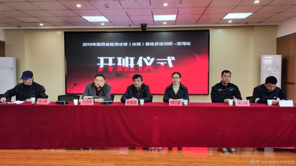 为响应两办《关于以2022年北京冬奥会为契机发展冰雪运动的意见》,落实教育部对冰雪运动进校园的工作要求,11月18日,2019年陕西省轮滑冰球(冰球)教练员培训班开班仪式在我校举行。我校副院长张琴,陕西省冬季管理中心副主任刘承军,宝鸡市体育局副局长王宝林,陕西省学生体育协会陈煦等领导出席开班仪式,我校体育部有关同志及全体学员参加了仪式。