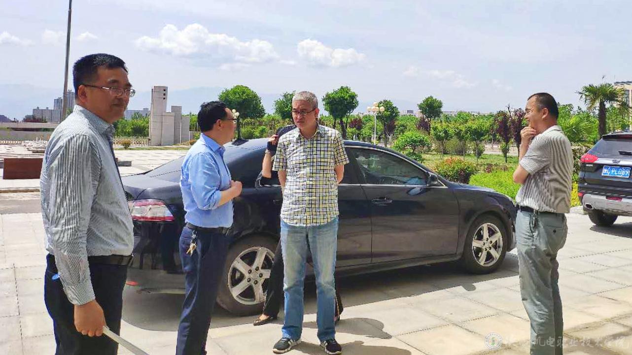 陕西省发展和改革委员会社会处调研员强伟(左一)一行到我校蟠龙新校区考察