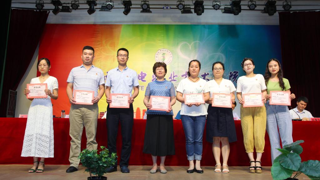 张琴宣读《关于2020年 “专业(学科)带头人、骨干教师、优秀聘任教师、优秀青年教师”评选结果的通知》并颁发证书,授予孟召琴等12名同志“专业(学科)带头人”称号,授予刘华玲等23名同志“骨干教师”称号,授予陈清等7名同志“优秀聘任教师”称号,授予杨丹等14名同志“优秀青年教师”称号。
