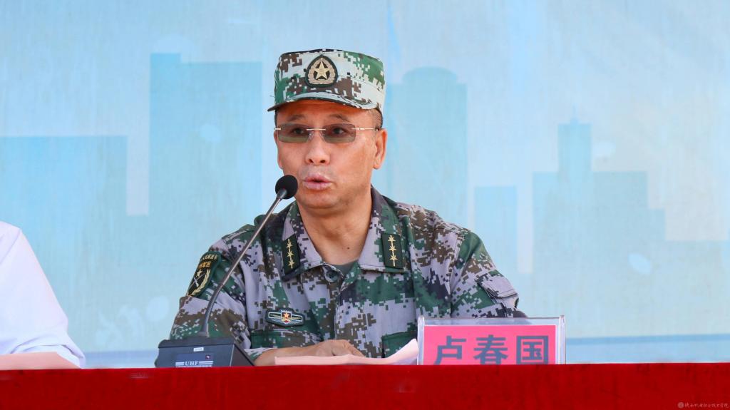 卢春国代表承训部队官兵对此次军训提出几点要求。要求同学们学习军人优良作风,锻炼吃苦耐劳拼搏奋斗的精神,端正态度、令行禁止、意志刚强,用出色的表现为大学生活开好头。要求军训教官坚持标准、严格要求、认真施训,确保圆满安全地完成本次军训任务。
