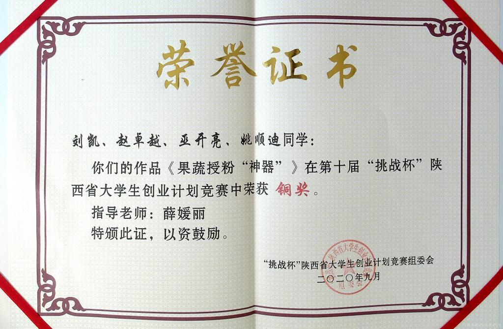 经过组委会专家评审,我校学生万文亭、赵林芬和包亚东在白兰老师的指导下,参赛作品《南乔易GO街-靖远枸杞》获得省赛金奖,同时该作品也代表我省参加国家比赛;刘凯、赵卓越、巫开亮和姚顺迪在薛媛丽老师指导下,参赛作品《果蔬授粉“神器”》获得省赛铜奖。