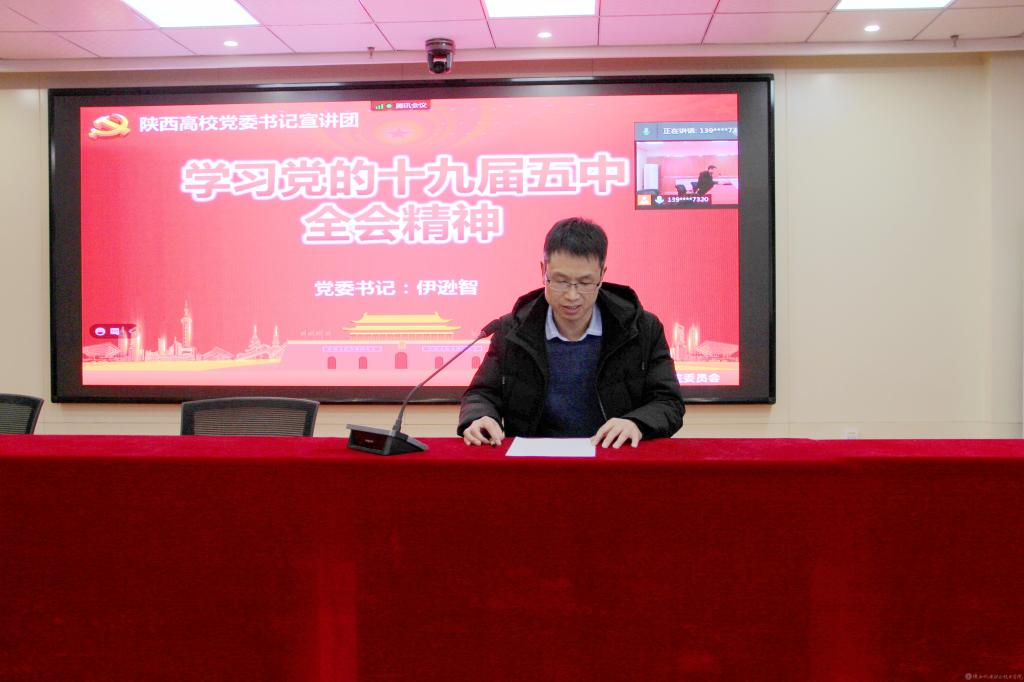 12月14日下午,买球赛的app官网党委召开党的十九届五中全会精神宣讲报告会,党委书记伊逊智作宣讲报告。报告会由党委宣传部部长李明主持。