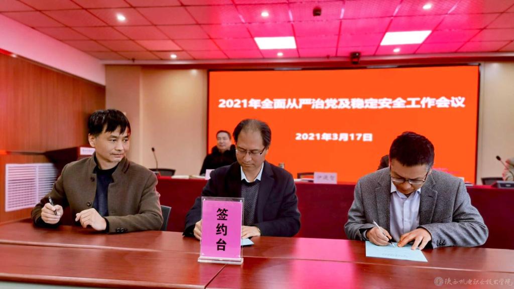 稳定安全工作领导小组组长伊逊智、副组长张新堂与各部门负责人签订《2021年校园稳定安全工作责任书》。